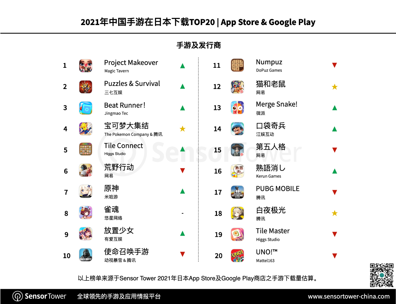 Sensor Tower:日本手游市场 2021 年收入超 184 亿美元,仅次于美国